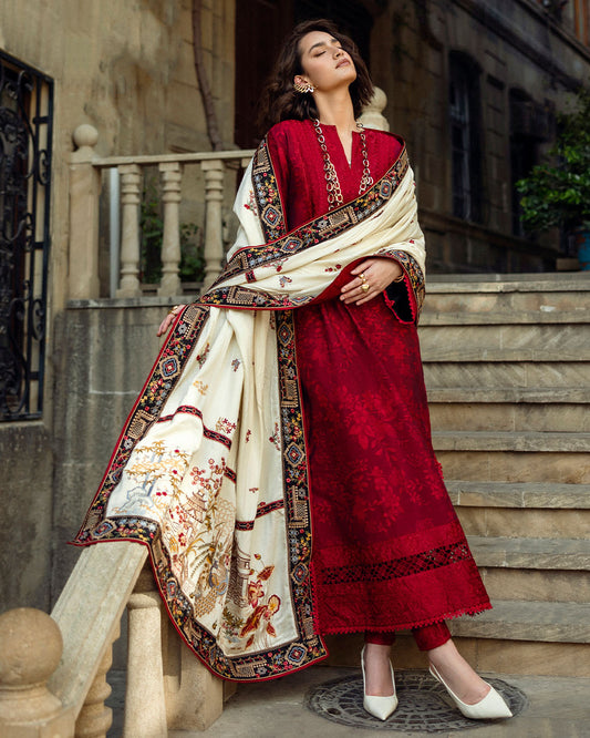 Unstitched 3 Piece Fully Embroidered Dhanak Suit with Embroidered Dhanak Shawl