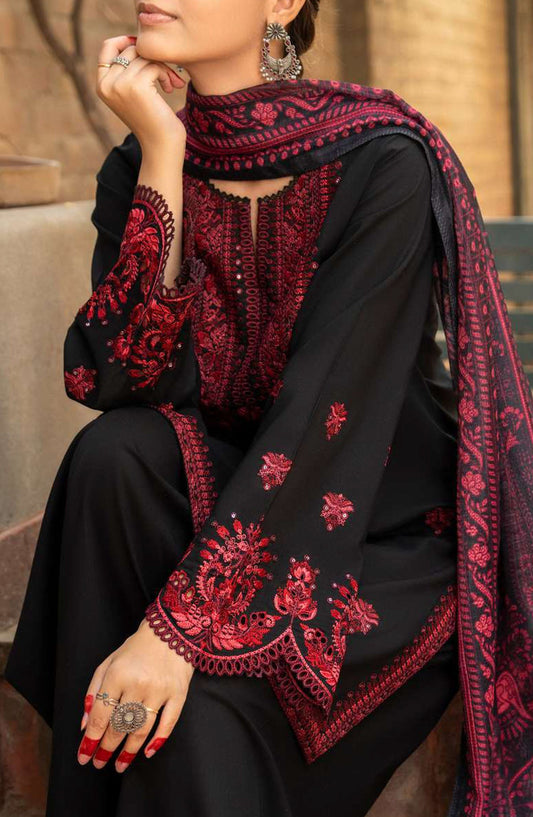 Unstitched 3 Piece Fully Embroidered Suit With Embroidered Dhanak Shawl