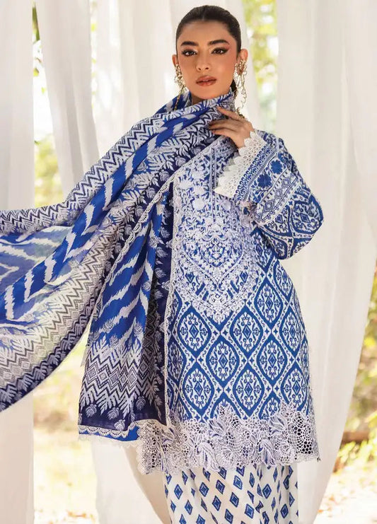 3 Piece Unstitched Embroidered Lawn Suit ( Digital Printed Bamber Chiffon Dupatta )