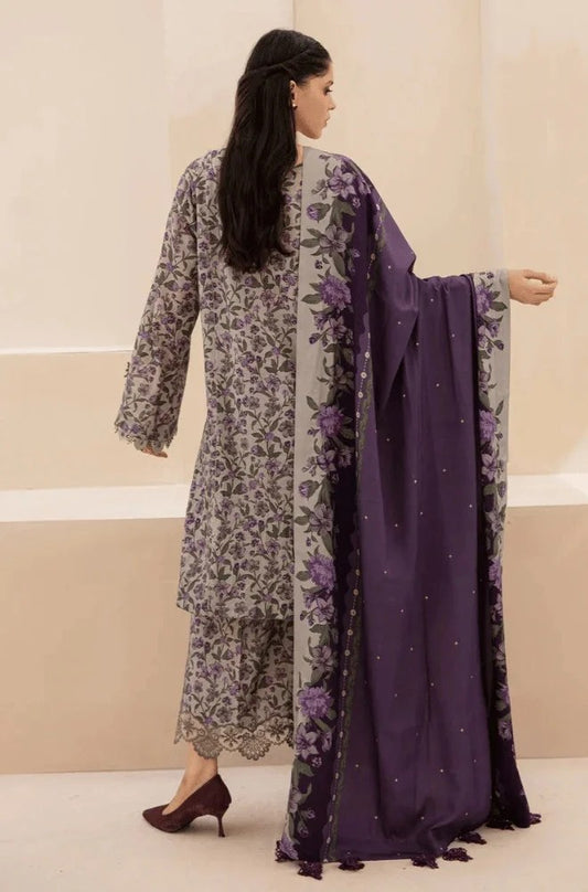 3 Piece Unstitched Embroidered Lawn Suit ( Printed Monaar Zari Dupatta )