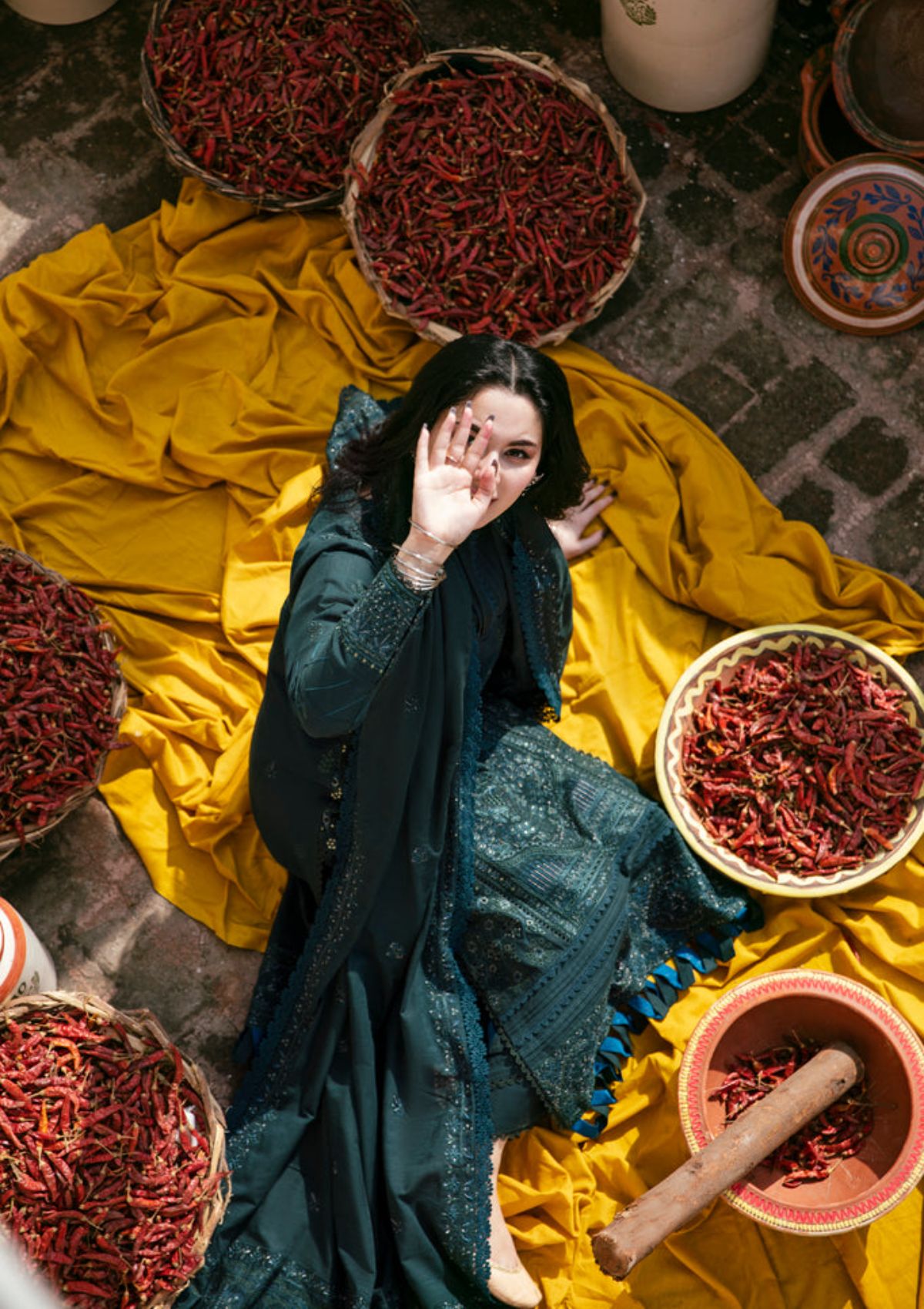 Unstitched 3 Piece Fully Embroidered Dhanak Suit with Embroidered Dhanak Shawl