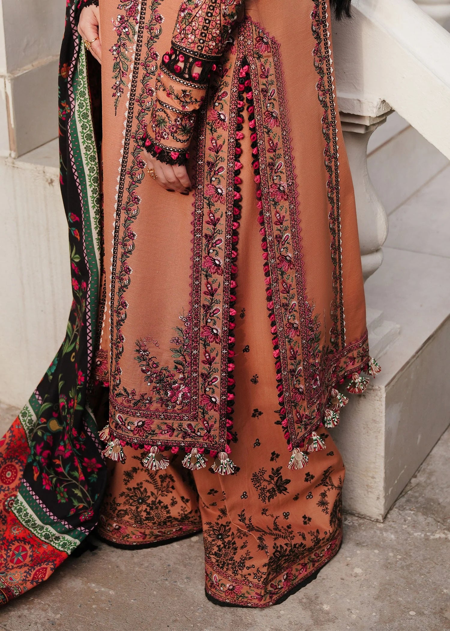 Unstitched 3 Piece Fully Embroidered Dhanak Suit with Printed Woolen Shawl